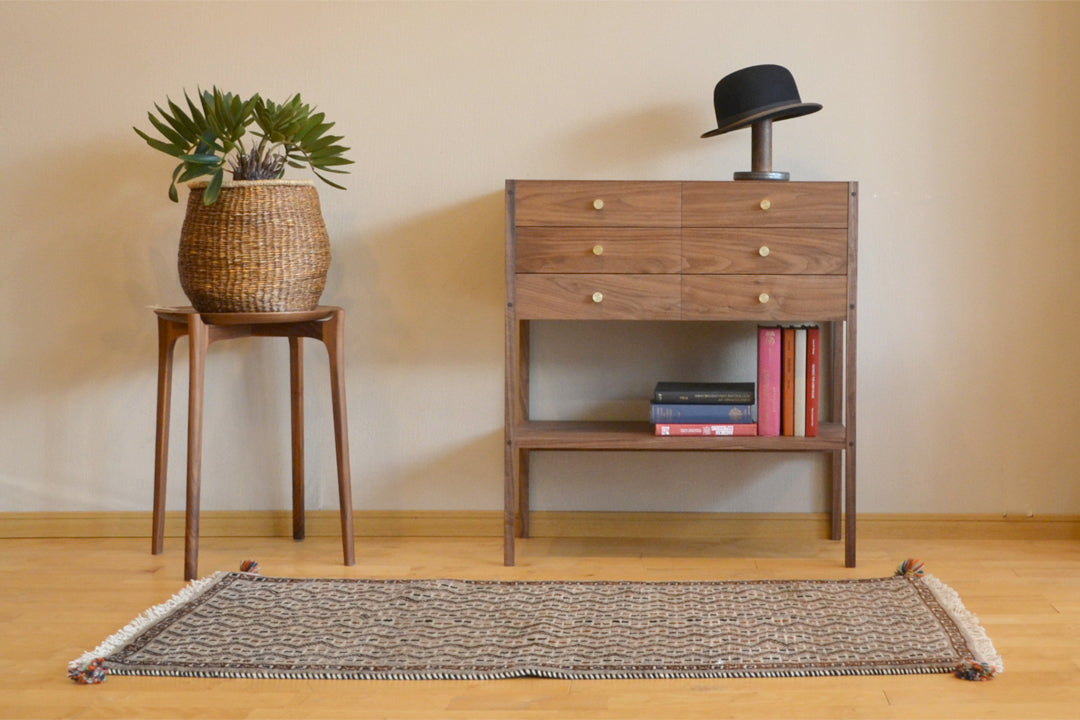 天板と前板を45度で製作する留め加工や引き出し内部の蟻組加工など職人の技術が垣間見える堅牢な作りとなっており長きに渡り使用できるクオリティで製作させています。