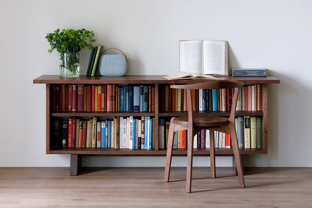 天然木無垢材が持つ『節』をデザインに取り入れたカウンターシェルフ『CARAMELLA』。