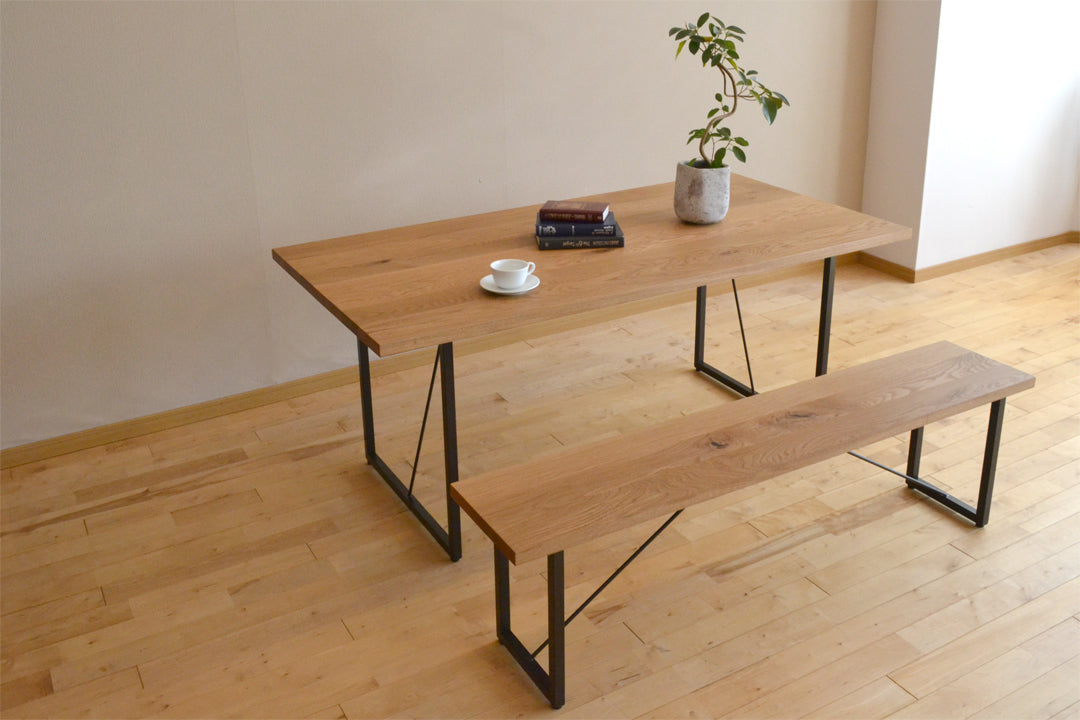 スチールレッグテーブル FREX (フレックス) 。広松木工の「FREX(フレックス)」シリーズは直線基調のシンプルな造形に、温かみのある「天然木」とクールなイメージの「スチール」という対照的なマテリアルのコンビネーションが印象的。