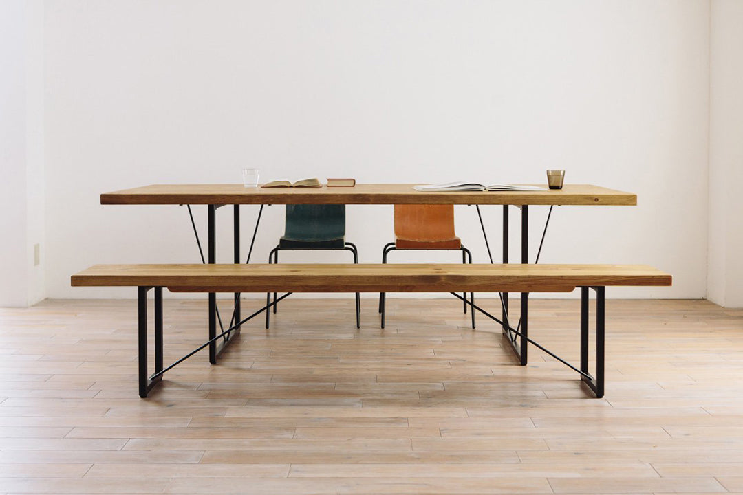 パイン無垢材にアンティーク風の加工を施し、長いこと使ってきたかのような味わいを与えたGALAシリーズ。木目を掘り起こす「うづくり加工」を施し、さらに傷やなぐり、虫穴などを付けたり、塗装の剥がしやぼかしといった「ディストレッシング加工」を施しています。