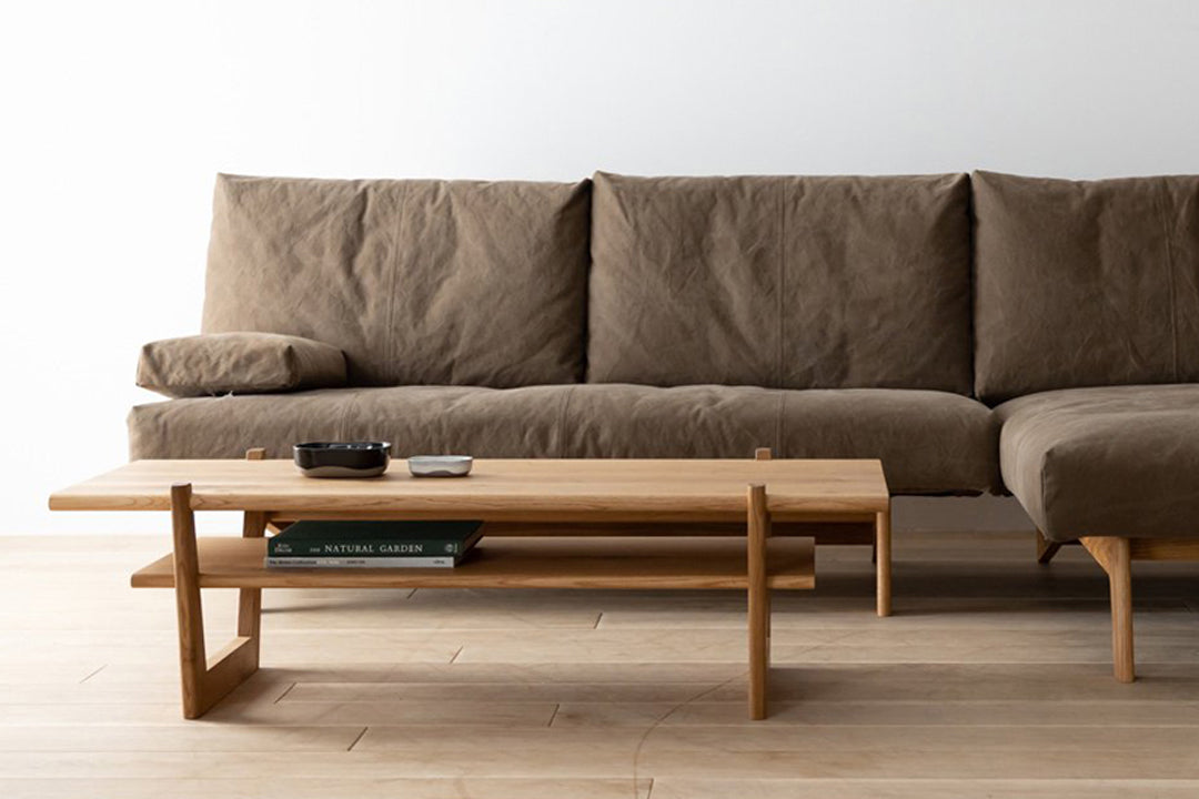 座った時に沈み込まないことで立ち座りがしやすく身体への馴染みの良いソファです。またアームレスタイプですので横からも入りやすく、ついつい足を伸ばして寝転びたくなります。
