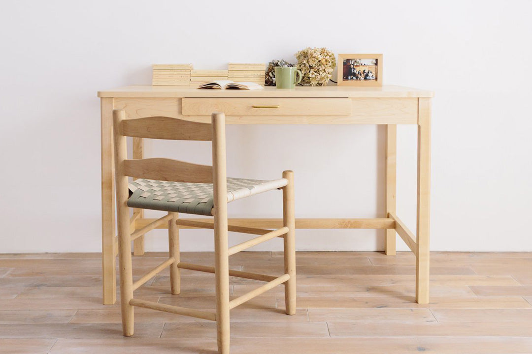 長年ご使用いただけるシンプルな無垢材のデスク。単体でのご使用以外にも、専用シェルフやチェストを組合わせたコーディネートもおすすめです。