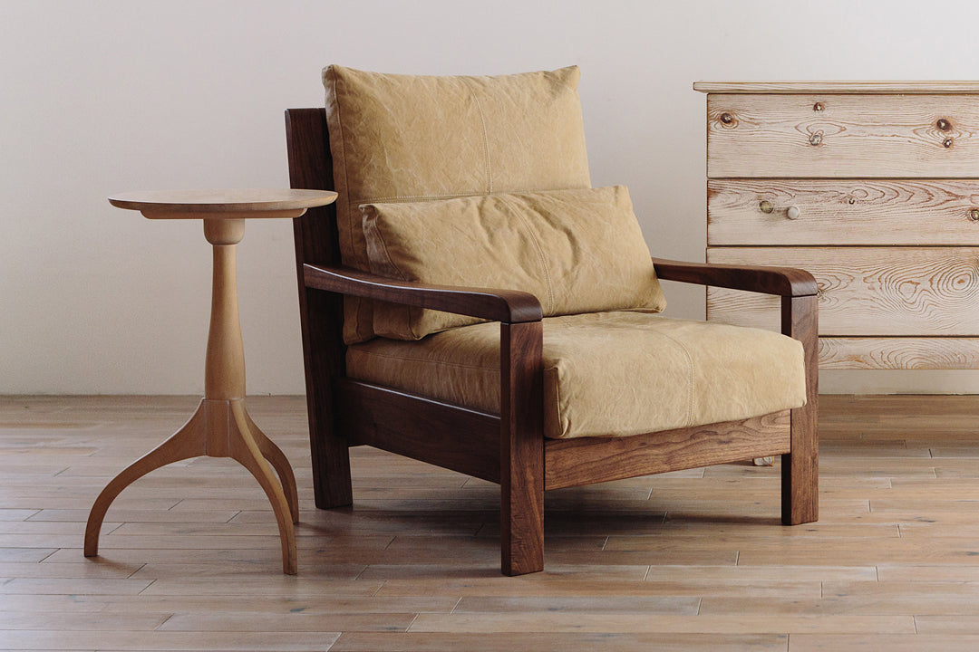 抑揚のある曲線で仕上げられた肘は、独特の触り心地で何とも言えない安心感を感じさせます。長年愛用していただく中でオイル仕上げならではの優しい光沢感をまとっていきます。