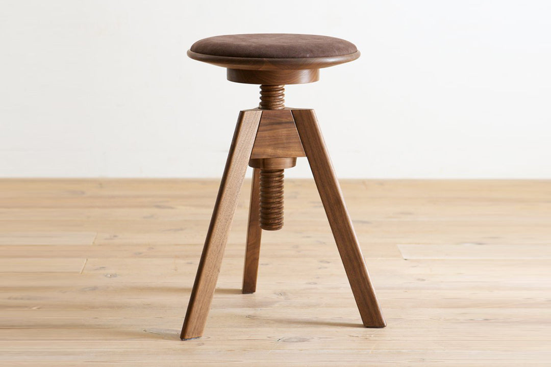 座面を回転させることで高さ調節可能な昇降式スツール。座面を取り外すとサイドテーブルに早変わり。どんな場所にも気軽に置くことができ、ダイニング、キッチンカウンター、リビング、ワークデスクなど、あらゆるシーンで多用途に活躍します。座面にはクッション性があるため、長時間座っていても負担がありません。